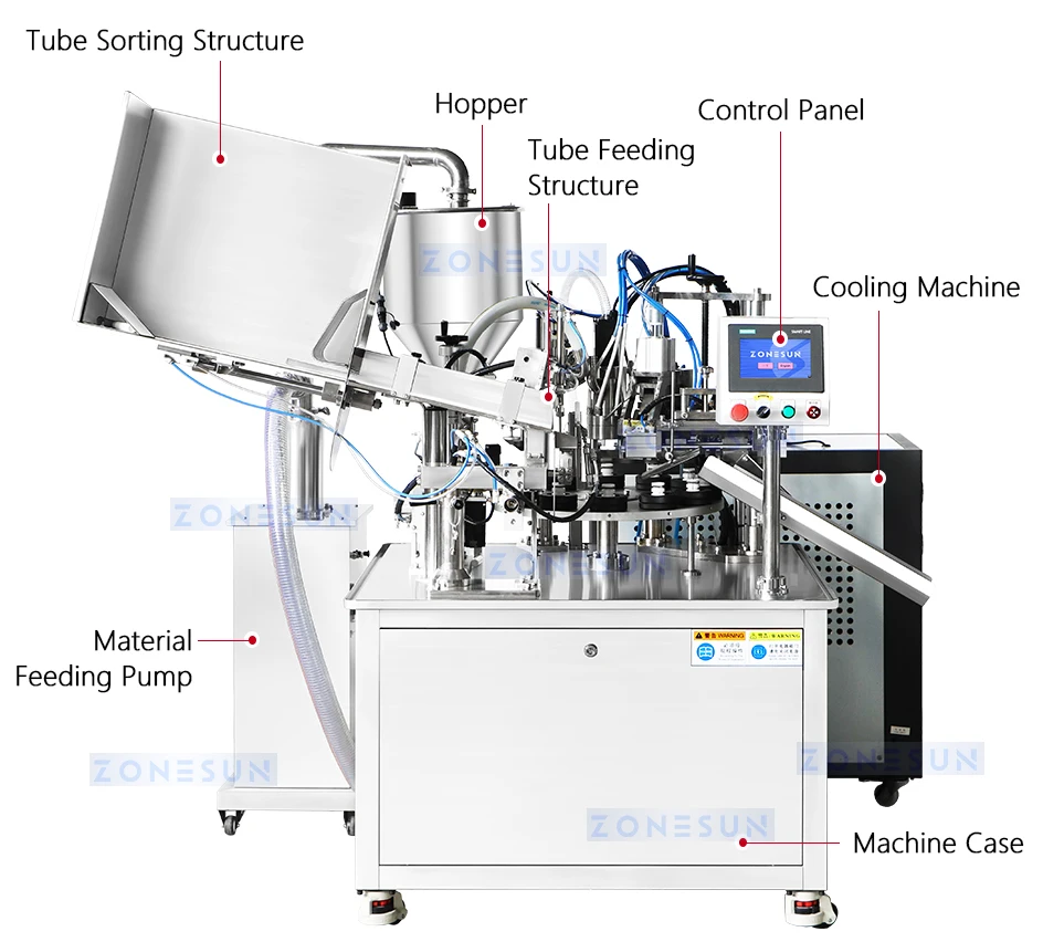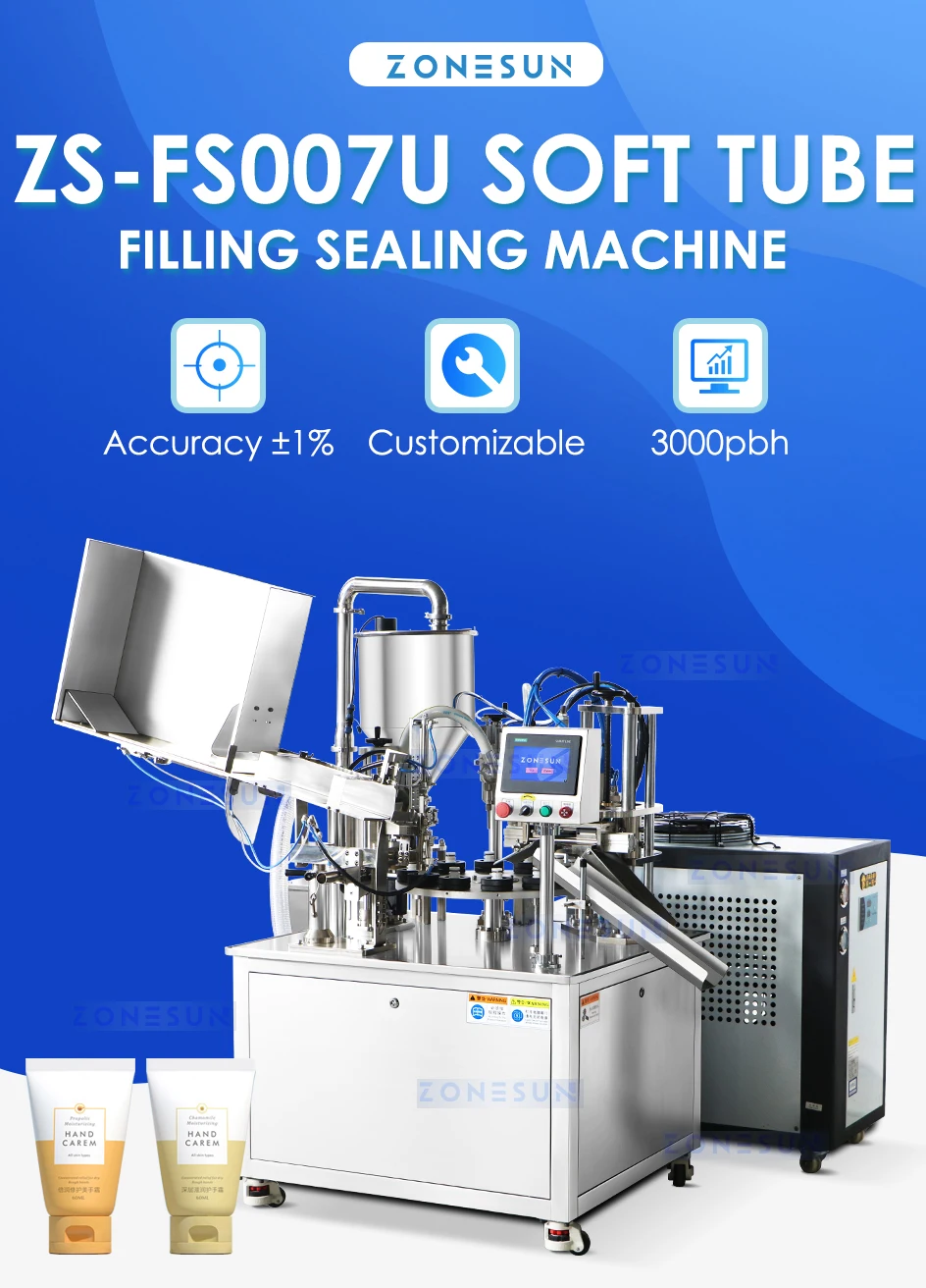 ZONESUN Automatic Tube Filling and Sealing Machine for Cosmetics Plastic Tube Filler ZS-FS007U