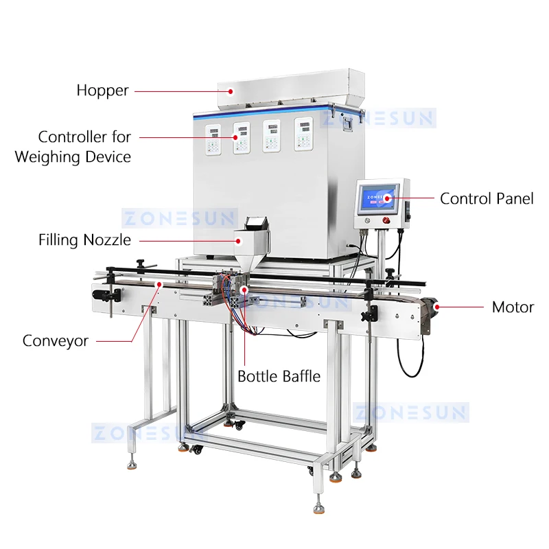 ZONESUN Digital Control Granule Filler | Automatic Grain Packing Machine ZS-GW4C