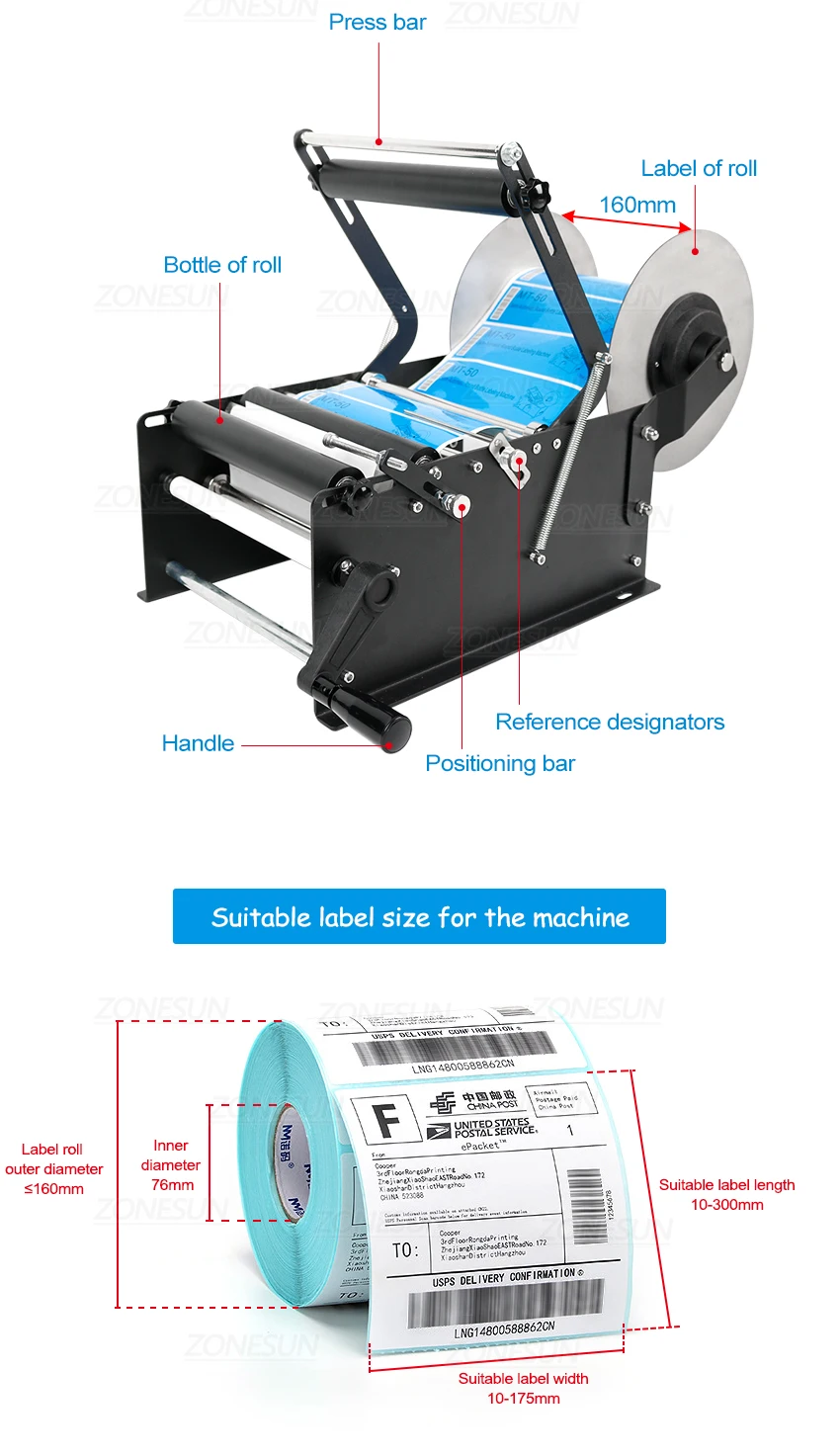 Kami meningkatkan mesin pelabelan manual kami untuk membuatnya dapat digunakan pada stiker label pada botol bulat yang lebih tinggi seperti botol anggur. Mesin label ini dengan bodi mesin kecil, dan mudah dioperasikan. Ini adalah pilihan ideal untuk produksi skala kecil.